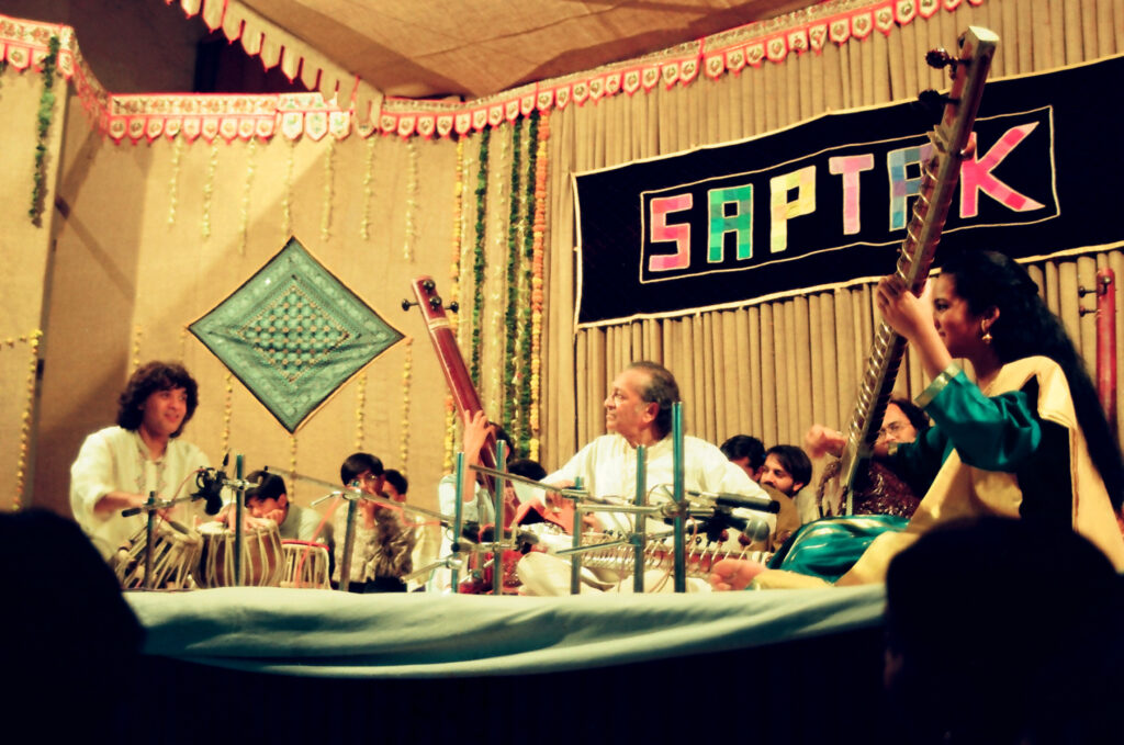From Pt. Ravi Shankar ji’s rendition of Raag Gunji Kanada in Tishra Jaati Rupak at the 1997 Saptak Festival, to Pt. Shivkumar Sharma acknowledging his sensibilities in providing ‘theka’ during their performance in 2004, or the tabla skin tearing during his performance with Pt. Hariprasad Chaurasia at the 1994 festival, after which a new tabla was provided and the concert continued with full vigor, each moment has been a testament to his extraordinary artistry.