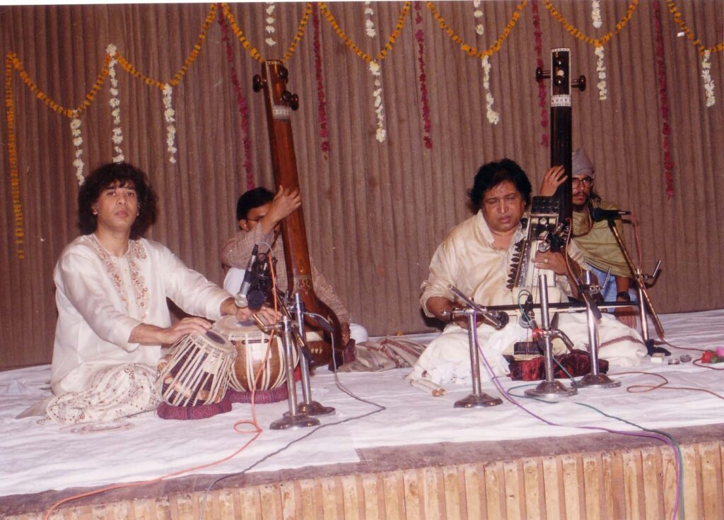While exploring and collaborating with Western musicians, Zakir Ji never lost touch with his roots, frequently performing alongside legendary figures of Indian Classical Music such as Pt. Ravi Shankar, Ustad Ali Akbar Khan, Ustad Vilayat Khan, Pt. Nikhil Banerjee, Pt. Birju Maharaj, Pt. Shivkumar Sharma, Pt. Hariprasad Chaurasia, Vidushi Girja Devi, and Vidushi Kishori Amonkar, among others, both in India and abroad. His solo performances and duets with Ustad Alla Rakha Khan Sahab were also highly anticipated.