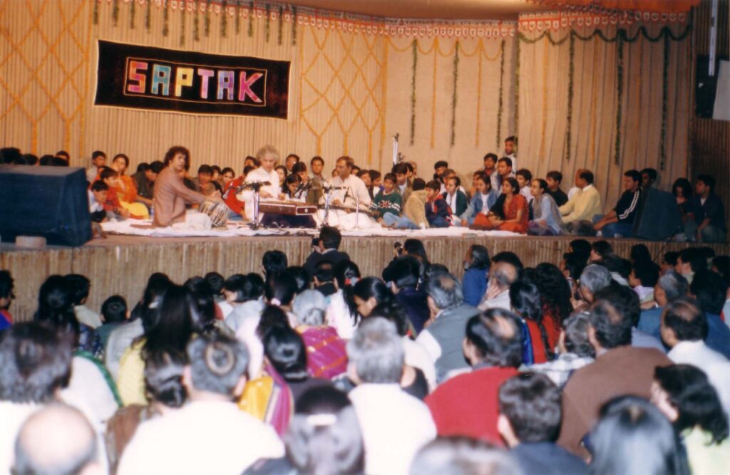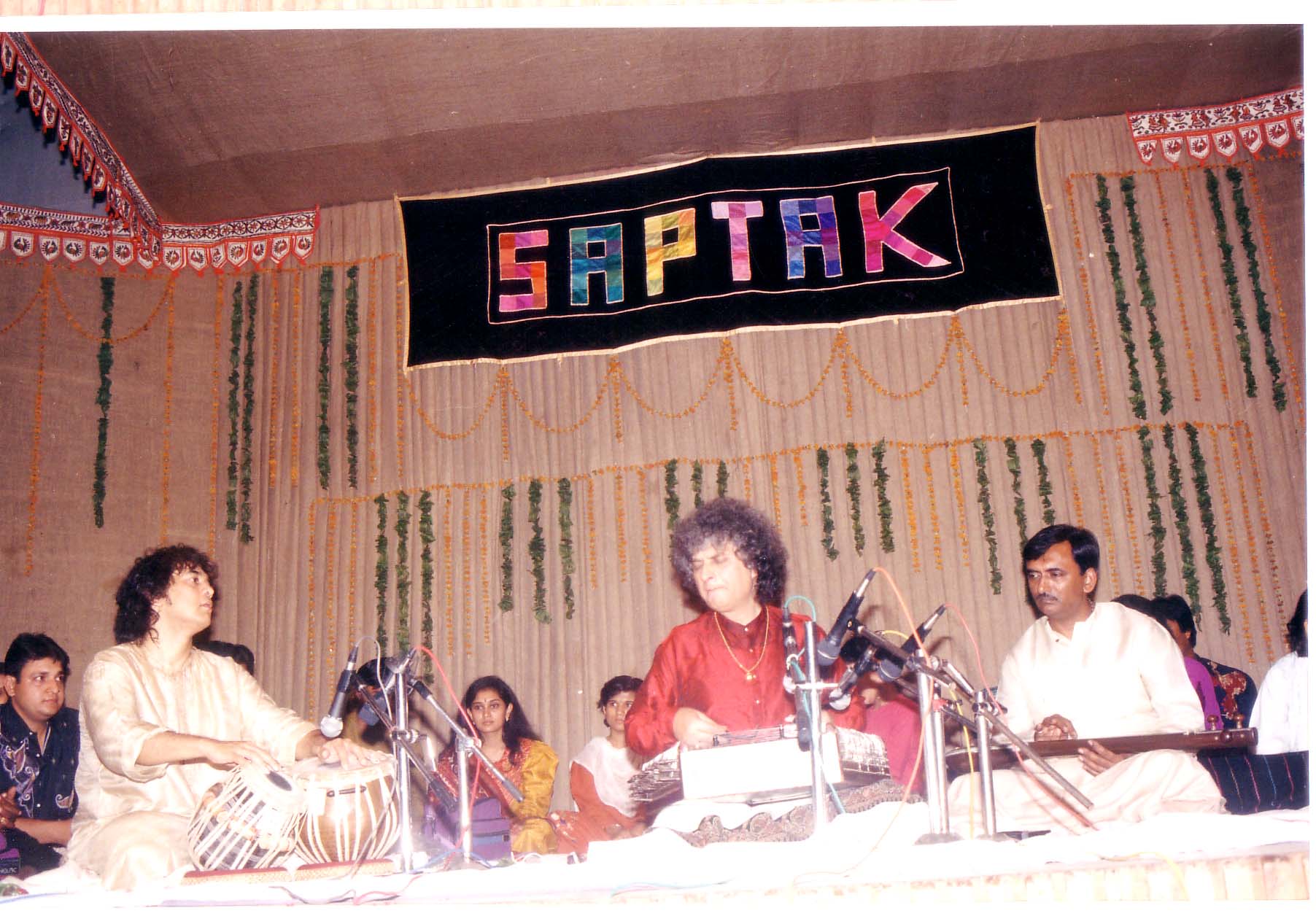 From Pt. Ravi Shankar ji’s rendition of Raag Gunji Kanada in Tishra Jaati Rupak at the 1997 Saptak Festival, to Pt. Shivkumar Sharma acknowledging his sensibilities in providing ‘theka’ during their performance in 2004, or the tabla skin tearing during his performance with Pt. Hariprasad Chaurasia at the 1994 festival, after which a new tabla was provided and the concert continued with full vigor, each moment has been a testament to his extraordinary artistry.