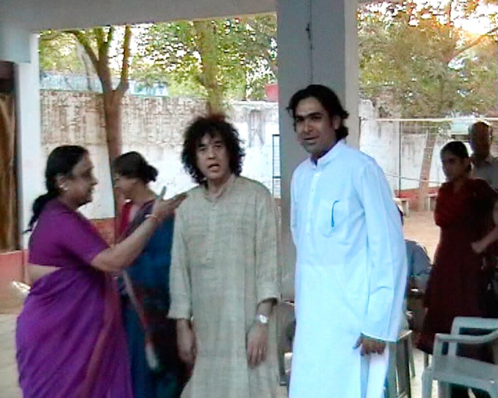 On 5th January 2006, at the request of Nandan ji, Zakir ji felicitated Pt. Kishan Maharaj ji alongside other stalwarts such as Pt. Hariprasad Chaurasia, Pt. Rajan Mishra, Pt. Sajan Mishra, Pt. Vishwa Mohan Bhatt, and others, in the presence of the audience at the Saptak Annual Music Festival. That same year, he visited the Saptak Archives to tour the facility and the school.